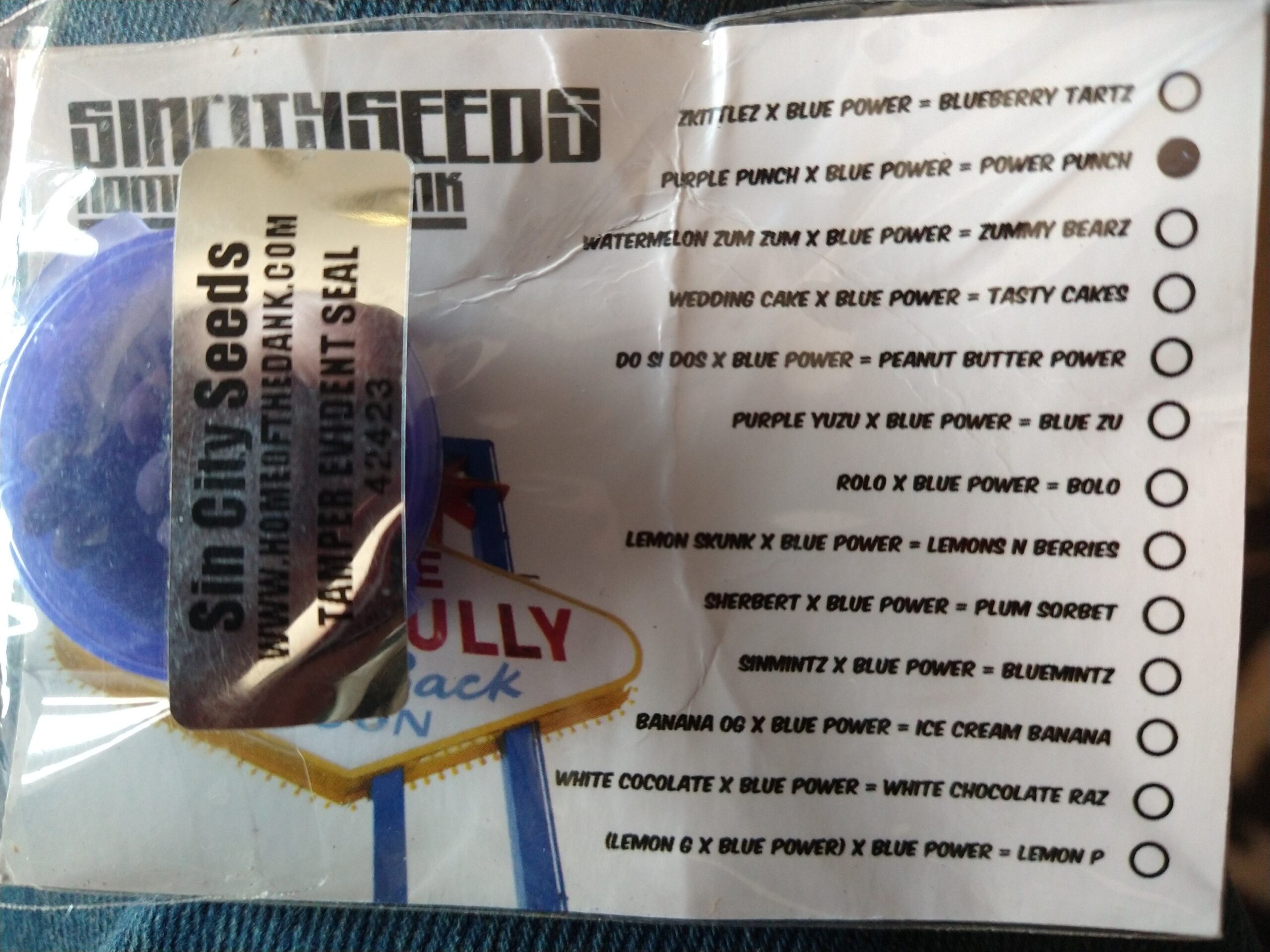 Sin City Seeds Power Punch: Purple Punch x Blue Power. Photo regs.